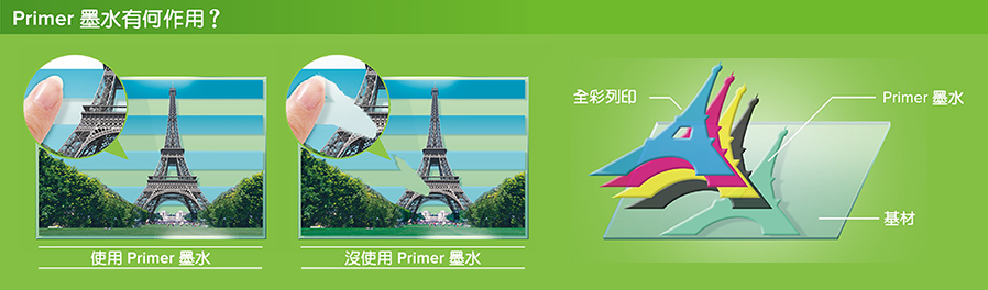 *Primer 架橋劑的附著性可能根據基材和條件的不同而有變化,建議在生產之前先測試墨水的附著性。